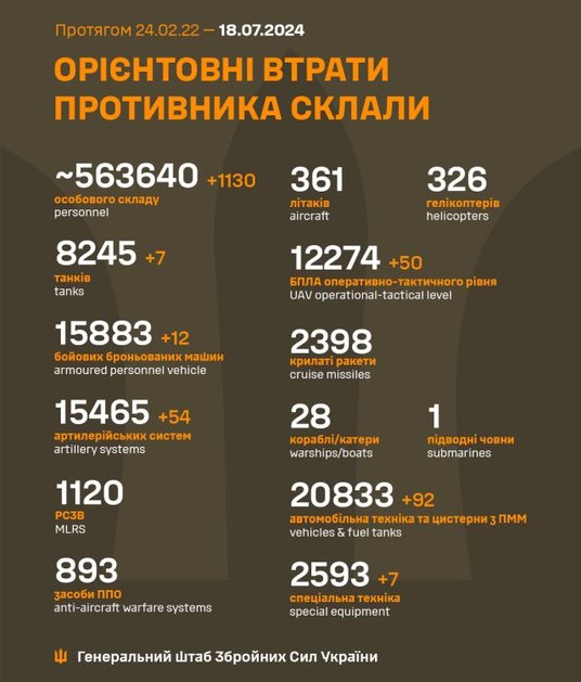 Sztab Generalny informuje o najnowszych stratach Rosji