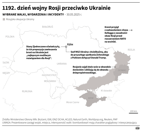 Decyzja Rosji o wysłaniu delegacji niskiego szczebla na zbliżającą się rundę rozmów pokojowych w Stambule 2 czerwca świadczy o braku rzeczywistego zainteresowania poważnymi negocjacjami i celowej strategii mającej na celu opóźnienie procesu – twierdzi amerykański Instytut Studiów nad Wojną (ISW). W ramach analizy ISW przytacza komentarze Stałego Przedstawiciela Rosji przy ONZ Wasilija Niebenzyi podczas posiedzenia Rady Bezpieczeństwa ONZ 30 maja, który stwierdził, że „Rosja jest gotowa walczyć z Ukrainą tak długo, jak będzie to konieczne”, a Ukraina może albo zaakceptować pokój – prawdopodobnie na warunkach Rosji – albo „ponieść nieuchronną klęskę na polu bitwy”.