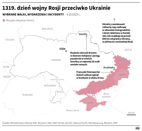 Ołeh Hryhorow – szef władz wojskowych obwodu sumskiego – poinformował za pośrednictwem mediów społecznościowych, że Rosjanie zaatakowali dworzec kolejowy oraz pociąg pasażerski w mieście Szostka. Według jego relacji, z premedytacją uderzono w obiekty cywilne. „Rosja zaatakowała dworzec kolejowy w miejscowości Szostka. Wróg celowo uderzył w infrastrukturę cywilną, pociąg pasażerski relacji Szostka–Kijów. Poszkodowani zostali pasażerowie. Na miejscu pracują ratownicy, lekarze i wszystkie służby ratunkowe” – zaznaczył we wpisie opublikowanym w serwisie Telegram.