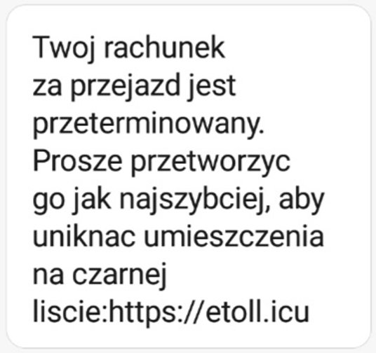 Ministerstwo Finansów ostrzega przed SMS-ami dotyczącymi płatności za przejazd w systemie e-TOLL. Ma ona następującą treść: