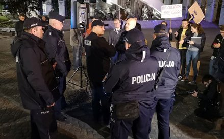 "Policja uniemożliwiła pokaz - najpierw kilkudziesięciu funkcjonariuszy blokowało możliwość użycia rzutnika do projekcji a następnie zajęła nasz sprzęt. W czasie interwencji użyto siły, by zablokować przeprowadzenie projekcji" - twierdzi Wiosna.
