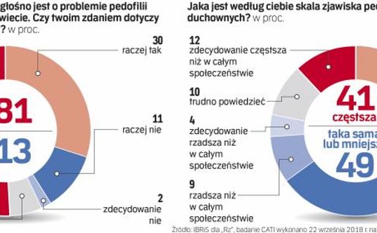 Ale prawie połowa respondentów (49 proc.) jest zdania, że odsetek pedofilów wśród księży jest podobny do tego w całym społeczeństwie lub mniejszy. Odmienne zdanie ma 41 proc. badanych.