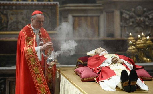 Jego ciało, ubrane w czerwone i złote szaty liturgiczne, zostało umieszczone na prostym podeście, a po obu stronach stali dwaj szwajcarscy gwardziści, gdy wierni przechodzili obok.