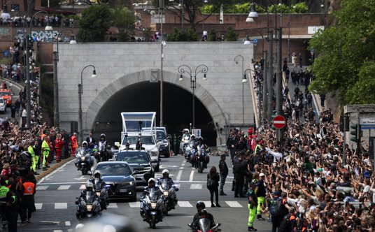 Na ostatnim odcinku swojej drogi papież Franciszek jest żegnany przez osoby bezdomne, ubogie i wykluczone – tych, którzy byli najbliżsi wartościom, jakie wyznaczały jego pontyfikat.