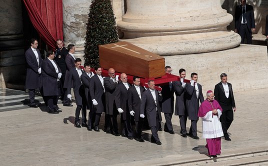 Po mszy świętej trumna została wniesiona do bazyliki Świętego Piotra. Niebawem wyruszy w kondukcie do bazyliki Matki Bożej Większej, gdzie pochowany zostanie papież Franciszek.