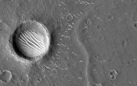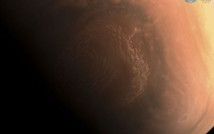 Kolorowe zdjęcie przedstawia rejon bieguna północnego Czerwonej Planety.