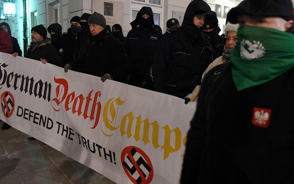 - Musimy przejść do kontrataku. Musimy mówić o tym, że byli żydowscy współpracownicy Niemców. Tak samo, jak byli zdegenerowani Polacy, nieliczni ale byli, tak samo byli Żydzi, którzy współpracowali przy mordowaniu własnych rodaków - mówił w czasie demonstracji poseł Robert Winnicki.
