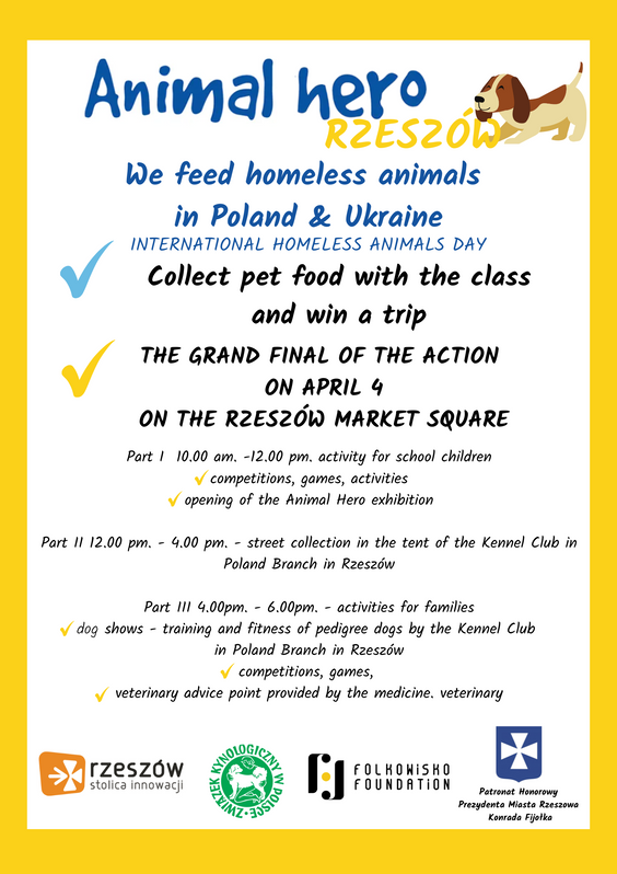 W akcję angażują się także rzeszowskie szkoły. Klasa, która zbierze najwięcej produktów dla zwierząt wygra wyjazd „Eko Przygoda” do Gorajca (gm. Cieszanów). Drugą nagrodą jest zwiedzanie rzeszowskich piwnic wraz z Prezydentem Rzeszowa, Panem Konradem Fijołek.