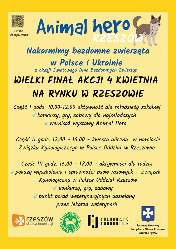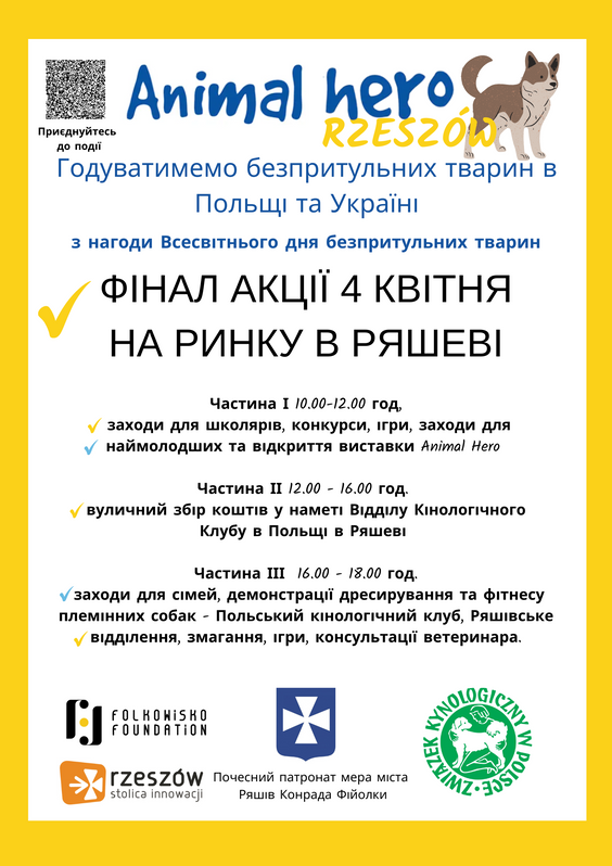 We wtorek, 04 kwietnia, w Rzeszowie odbędzie się również wernisaż wystawy „Animal Hero”, prezentującej zdjęcia psów oraz ich właścicieli wraz z opisem wspólnej historii, będącej opowieścią o ucieczce z pogrążonej wojną Ukrainy.