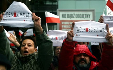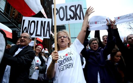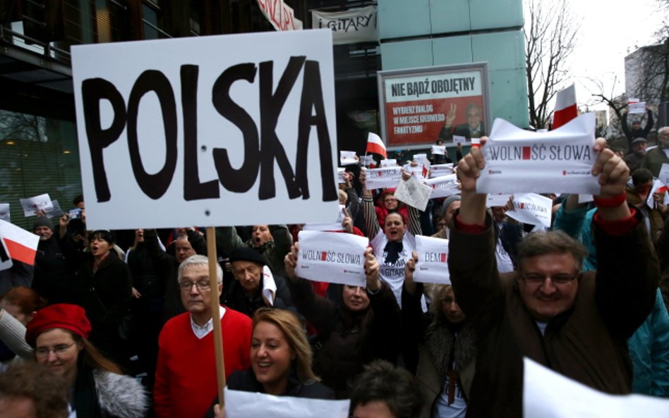 Do osób zgromadzonych pod siedzibą gazety dołączyli uczestnicy Marszu Wolności i Solidarności. Protest ma zakończyć się pod siedzibą Telewizji Polskiej.