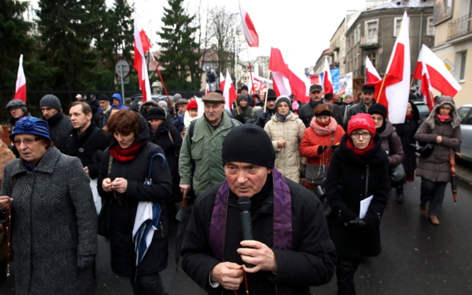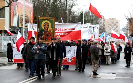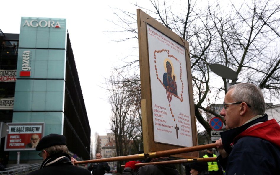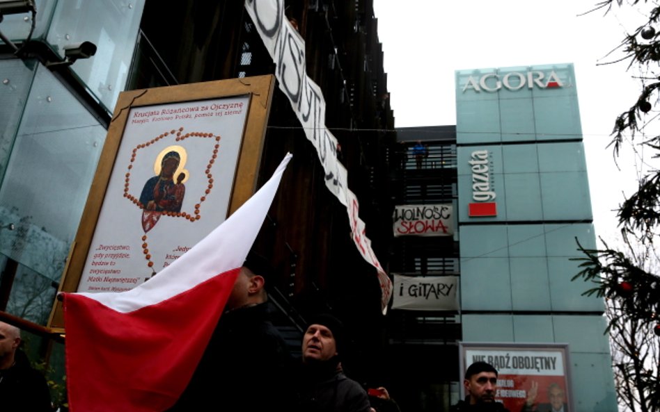 Pod budynkiem gazety zgromadziło się około stu osób. Uczestnicy protestowali przeciwko - jak sami mówili - kłamliwej propagandzie mainstramowych mediów. "To na pewno nie jest dziennikarstwo" - padało z tłumu. Uczestnicy protestu odmawiali modlitwę z egzorcyzmami.
