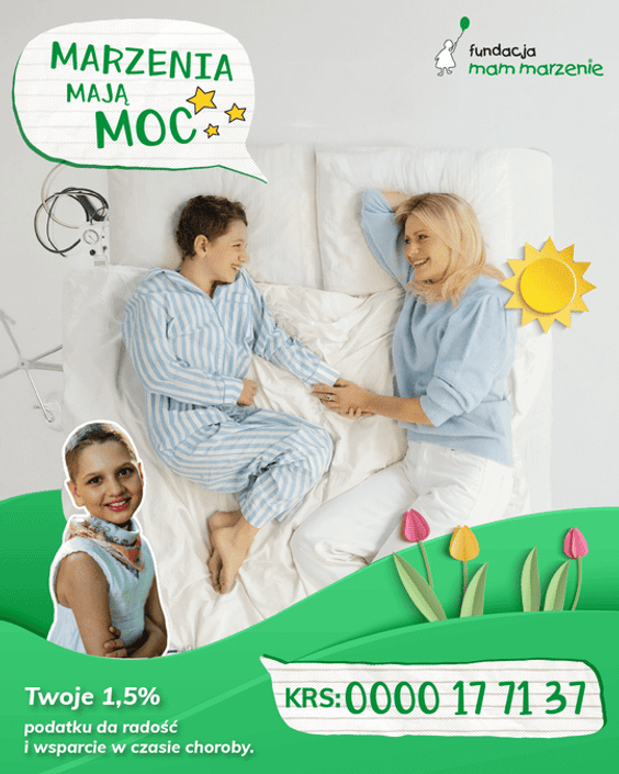 Historia Tosi i jej mamy to tylko jeden z tysięcy przykładów. Warto bowiem pamiętać, że w Polsce mnóstwo dzieci w wieku od 3 do 18 lat, cierpiących na choroby zagrażające ich życiu, nadal czeka na pomoc w spełnieniu choćby jednego marzenia. Dokładnie tym zajmuje się Fundacja Mam Marzenie. Wszyscy możemy wesprzeć ich działania, a właśnie teraz jest na to idealny moment.