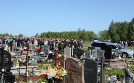 Do Knurowa zjechali kibice z całego kraju. Zamiast szalików mieli wieńce i kwiaty. Na pogrzebie obecni byli przedstawiciele wszystkich klubów piłkarskich ze Śląska, a także spoza niego.