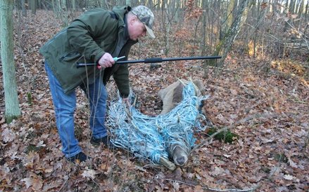 Informacje o młodym jeleniu, biegającym po lesie z głową oplątaną sznurami, dotarła do leśników już dwa tygodnie temu.