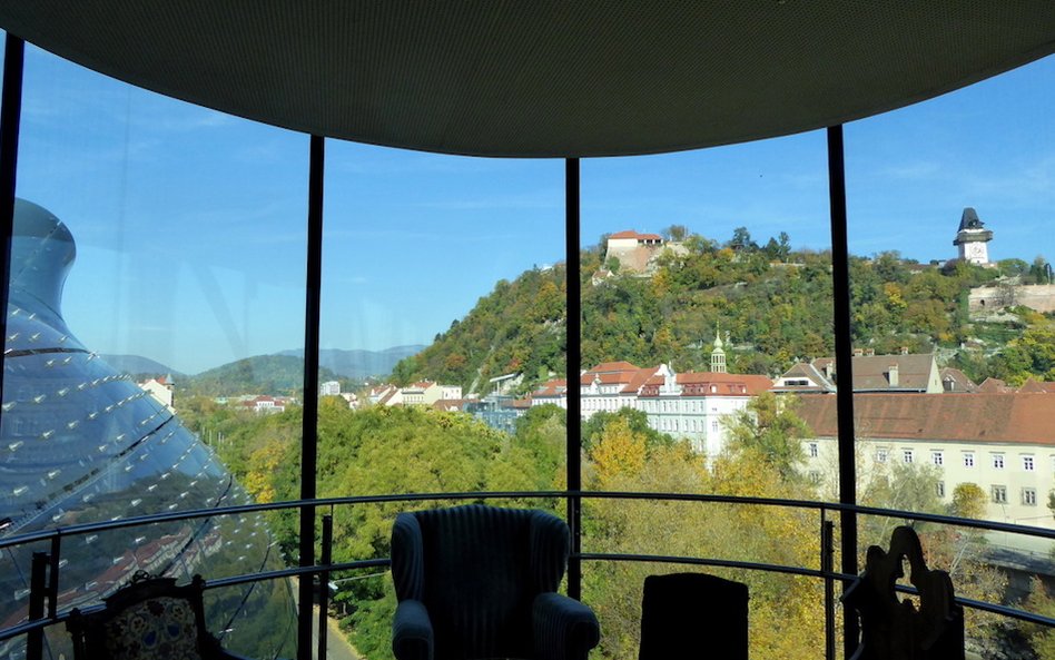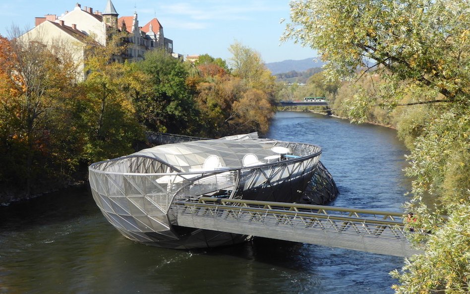 W galerii odbywają się wystawy czasowe, obecnie można oglądać ekspozycję poświęconą współczesnej architekturze Grazu. Druga wystawa „W nieznane” przypomina historię realizacji wizjonerskiego projektu. Niedaleko Kunsthausu jest jeszcze jedno odważne dzieło współczesnej architektury. To Murinsel – sztuczna wyspę na rzece, także powstała w 2003 roku. W tej stalowej konstrukcji mieści się amfiteatr, kawiarnia i plac zabaw. Prowadzą do niej kładki z obu brzegów rzeki, więc pełni też dodatkową rolę mostu dla pieszych. Długość fantazyjnie „zakręconej” wyspy wynosi 47 m. Na zamówienie miasta zaprojektował ją nowojorski artysta Vito Acconci.