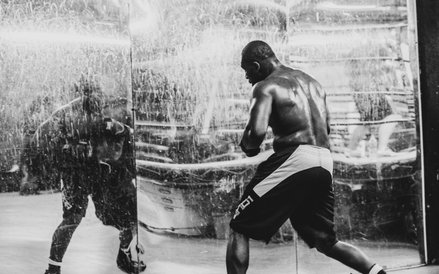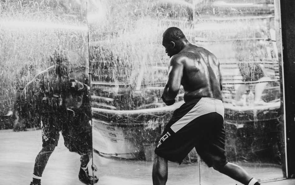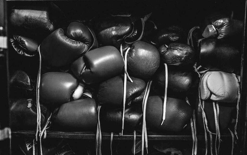 Ten ring znajduje się w Gleason's Gym na Brooklynie. Królestwo bokserów – amatorów i olimpijczyków – założył w 1937 r. włoski emigrant Peter Gagliardi. Pierwotnie mieściło się w dzielnicy Bronx, a później na Manhattanie. Trenowało tu wielu mistrzów świata, wśród nich giganci tacy jak Muhammad Ali czy Mike Tyson oraz Jake La Motta, znany jako Raging Bull. Na podstawie jego życiorysu nakręcono „Wściekłego Byka” z Robertem De Niro. Tutaj kręcone były niektóre ujęcia. Fotoreportaż zamówił u mnie magazyn „Champion” w 2015 r. do numeru poświęconego „Walce Stulecia”, w której Amerykanin Floyd Mayweather pokonał Filipińczyka Manny’ego Pacquiao. Po kilku dniach fotografowania w Gleason's Gym bokserzy i trenerzy zaczęli mnie rozpoznawać, przyzwyczaili się do mnie, zacząłem z nimi rozmawiać. Gleason's Gym nie straciło klimatu dawnych lat. Nadal na lekcje boksu może zapisać się tu każdy i ćwiczyć obok mistrzów. Zdjęcie na dole przedstawia tors jamajskiego boksera po półtoragodzinnym treningu, a obok widać amatora oglądającego w lustrze swój rozbity nos. Po prawej John Douglas – były olimpijski bokser, dziś trener – ćwiczy z jednym z dobrze zapowiadających się reprezentantów młodego pokolenia. Po rozmowach z utytułowanymi trenerami wyłania się smutna wizja boksu, który nie tylko traci na popularności, ale też coraz częściej przypomina nastawiony na zarabianie pieniędzy show. Sytuację, według legendy Gleason's Gym Hecotra Roca, mogłoby zmienić tylko pojawienie się charyzmatycznej gwiazdy pokroju Mike'a Tysona.