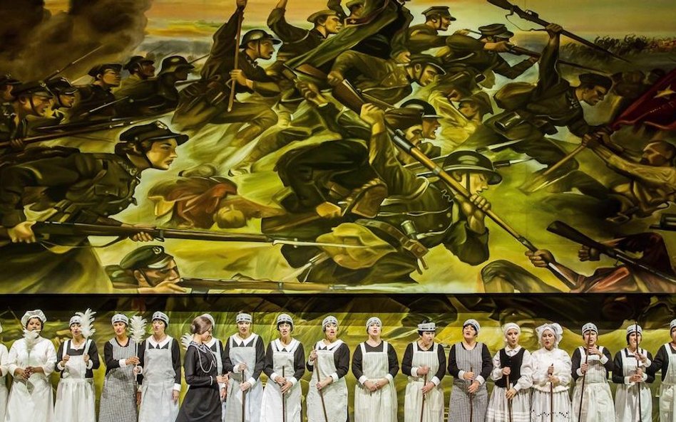 I scena druga na finał: w biało-czerwonej kolorystyce, z żywiołowym, żartobliwym mazurem w świetnej choreografii Emila Wesołowskiego. Beztroską zabawę reżyser przerwał na kilka sekund dramatycznym wtrętem, przypominającym, że nasza niepodległość nie trwała wiecznie. Tak było w epoce, którą przedstawił Moniuszko w „Strasznym dworze", ale również w II RP pokazanej przez Pountneya.