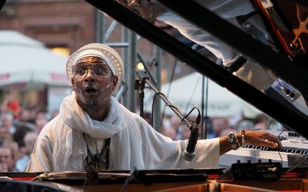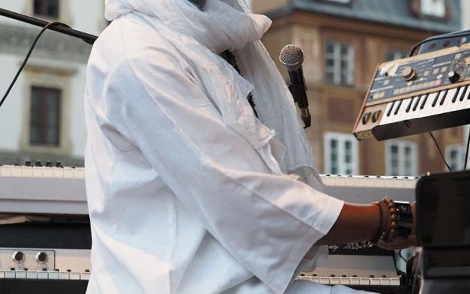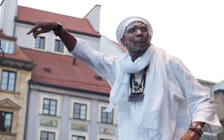 Kubański emigrant Omar Sosa jest fenomenem na światowej scenie, bo sam wydaje swoje albumy i zabiega o ich promocję. Nie wspiera go żadna wielka wytwórnia, a wszędzie na świecie oklaskują go tłumy słuchaczy. W sobotni wieczór Rynek Starego Miasta w Warszawie także wypełniła publiczność. Kubańczyk odwdzięczył się efektownym występem. Znany jest z szamańskich gestów inspirowanych tradycyjnymi wierzeniami przewiezionymi na Kubę przez porwanych z Afryki rdzennych jej mieszkańców. Ubrany na biało, obwieszony ozdobami, z których każda na pewno coś oznacza, wszedł na scenę z zapaloną świecą. Chwostem odpędził złe duchy od fortepianu i sam rozpoczął koncert. Akordy akustycznego instrumentu wzbogacał brzmieniem elektronicznych klawiatur. Podśpiewywał i uśmiechem zachęcał zespół do popisów. Jakby komuś było mało czarów, polał wodą mineralną z butelki scenę i bruk Rynku.