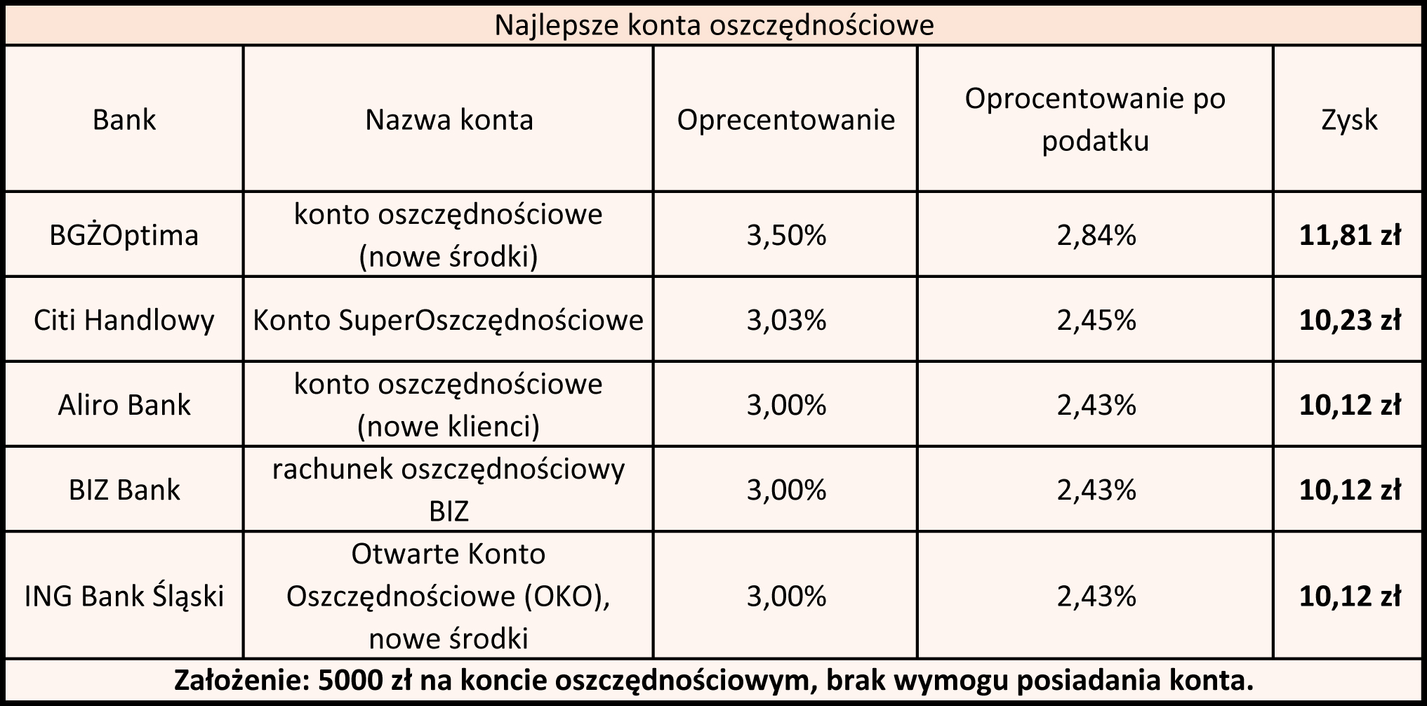 Który z nich wybrać? Według rankingu przygotowanego przez portal Wp.pl na pierwszy rzut oka najlepsze wydają się oferty banków Smart i Millenium (proponują oprocentowanie 4 proc. w skali roku). Trzeba jednak pamiętać, że jest to oferta z plakatu lub z reklamy z rozchwytywanym i bardzo przystojnym aktorem, a przy wyborze miejsca ulokowania środków warto rozpatrzyć wszystkie szczegóły. Wtedy sytuacja wygląda zupełnie inaczej, a zwycięzcą rankingu zostaje inne konto.