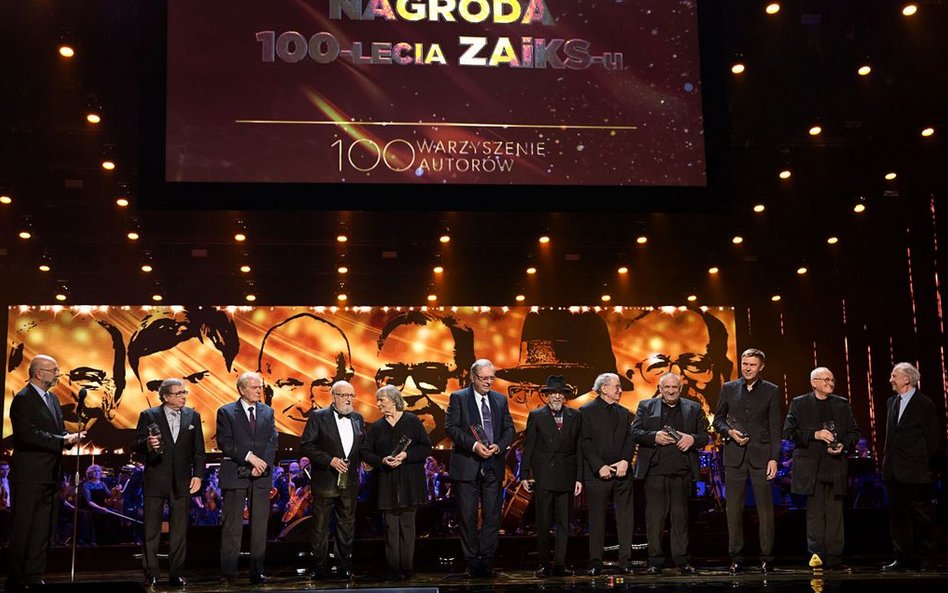 Wręczone też zostały szczególne wyróżnienia honorujące najwybitniejszych członków ZAiKS. Nagrody 100-lecia wręczono: Agnieszce Duczmal, Krzysztofowi Pendereckiemu, Tomaszowi Stańce, Krzysztofowi Zanussiemu, Ryszardowi Horowitzowi, Jackowi Cyganowi, Januszowi Gajosowi, Leonowi Tarasewiczowi, Wiesławowi Myśliwskiemu i Mirosławowi Bałce. Nadane zostały również honorowe członkostwa: Janowi A.P. Kaczmarkowi, Adamowi Makowiczowi, Jerzemu Maksymiukowi, Emilowi Wesołowskiemu, Janowi Kantemu Pawluśkiewiczowi, Januszowi Majewskiemu, a także nieobecnym na gali – Joannie Kulmowej i Jean-Michelowi Jarre owi. I aż żal, że była to uroczystość zbiorowa do tego stopnia, ze żaden z wyróżnionych nie miał szansy nawet powiedzieć: „dziękuję”.