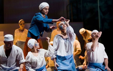 Z chłopskiej opowieści Jarosław Kilian zrobił dworski teatr. Nie bawił się w wiejską sielankę, pokazał, dworzan jak bawią się w aktorów, przyjąwszy role wieśniaków i pamiętają o hojności króla, który pod postacią boga Apollina spogląda na nich z plafonu na suficie widowni.