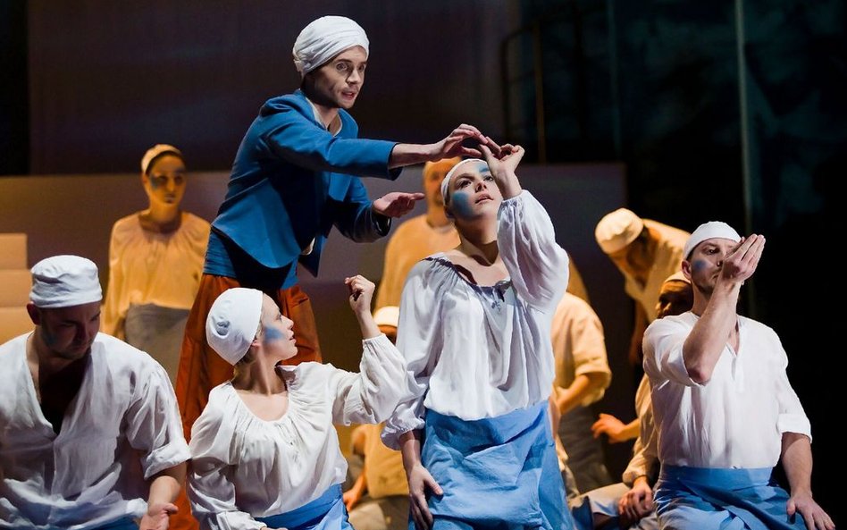 Obecna premiera jest wręcz powinnością, bo „Nędza uszczęśliwiona" to pierwsza polska opera, Maciej Kamieński skomponował ją zachęcony przez króla 240 lat temu. Tym niemniej dziś próby jej wystawienia nie przynoszą sukcesu, ale Jarosław Kilian znalazł sposób na tę skromniutką, muzycznie i teatralnie, opowieść o biednym wieśniaku Antku, którego wspomógł dobry pan, by poślubił Kasię i żył z nią szczęśliwie.