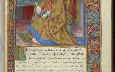 Kunsztownie i bogato zdobiony rękopis Jana Długosza to jeden z ważniejszych zabytków piśmiennictwa polskiego i rodzimej sztuki renesansowej o wielkiej wartości historycznej i wyjątkowych walorach estetycznych. Powstanie „Katalogu arcybiskupów gnieźnieńskich" wiąże się z działalnością trzech ważnych postaci w historii Kościoła – kronikarzem Janem Długoszem, zleceniodawcą Piotrem Tomickim, biskupem krakowskim, dyplomatą i politykiem, słynnym mecenasem sztuki, a także wybitnym renesansowym iluminatorem Stanisławem Samostrzelnikiem, zakonnikiem w podkrakowskim opactwie Cystersów w Mogile.