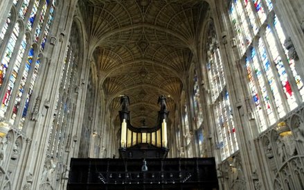 Henryk VIII z dynastii Tudorów zaznacza swoją obecność w wielu elementach wystroju, m.in. wcielił się w króla Salomona na jednym z wspaniałych witraży, a także pozostawił swoje inicjały, wyrzeźbione w potężnej drewnianej przegrodzie chórowej, wspierającej słynne organy kaplicy. Wśród ornamentów imponującej przegrody wypatrzeć można też inicjały jego drugiej żony Anny Boleyn, bo organy ufundowane przez króla w 1532-36 roku miały upamiętnić zawarcie z nią ślubu. Zakrawa to na wyjątkową perfidię, gdyż Henryka VIII znamy dobrze jako despotę i krwawego okrutnika, który miał sześć żon. Pozbywał się ich bez skrupułów, gdy kolejna kobieta budziła jego zainteresowanie i dwie z nich - Anna Boleyn i Katarzyna Howard skończyły na szafocie.
