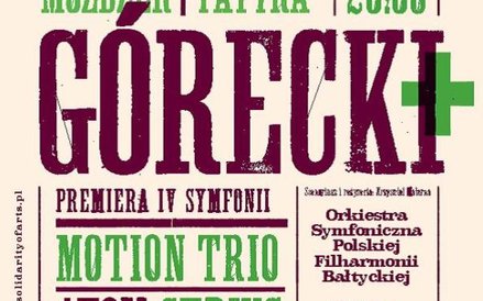 Dzień później, w niedzielę, na tych samych scenach odbędzie widowisko muzyki poważnej Górecki+. Wystąpi Leszek Możdżer, akordeonowe Motion Trio, ceniony także za granicą Atom String Quartet oraz jedyny polski zwycięzca Międzynarodowego Konkursu Skrzypcowego im. Paganiniego Mariusz Patyra. Kulminacyjnym momentem koncertu będzie wykonanie przez Orkiestrę Symfoniczną Polskiej Filharmonii Bałtyckiej jednego z najbardziej wyczekiwanych utworów ostatnich lat – IV symfonii Mikołaja Góreckiego. Wstęp jest darmowy.