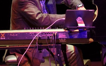 Następnie usiadł do elektronicznego instrumentu, by wyczarowywać najróżniejsze efekty: od wiatru i echa odbijającego się od ścian do brzmień perkusyjnych, gwizdów i klaksonu, który wywołał wesołość na sali. Jakby mu tego było mało, wydobywał z pamięci laptopa głosy męskie i żeńskie i przetwarzał je. Wreszcie imitował dźwięk harfy modyfikując go na swój sposób.