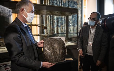 Do Luwru wrócił hełm i ozdobny napierśnik - elementy zbroi wykonanej w latach 1560-1580 w Mediolanie. Zbroja została przekazana do Luwru w 1922 roku przez rodzinę Rotschildów, a należące do kolekcji baronowej de Rotschild.