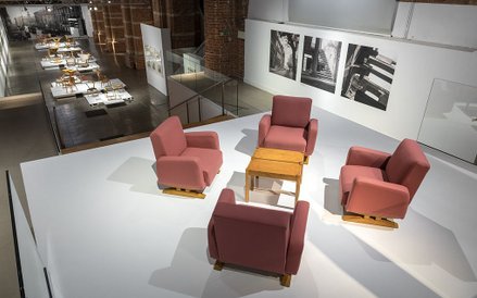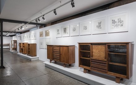 Ekspozycja ukazuje szerokie spectrum jego działalności, na którą składają się prototypy i projekty mebli, dekoracje i projekty wnętrz, projekty tkanin, rysunki i grafiki.