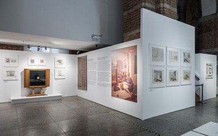 Władysław Wincze (1905-1992), urodzony w Odessie, rozmiłowany w Warszawie studiował tu właśnie – równolegle na Politechnice i w Szkole Sztuk Pięknych (obecnej ASP) pod kierunkiem Karola Tichego, Wojciecha Jarzębowskiego i Tadeusza Pruszkowskiego. W 1928 roku wygrał konkurs (razem z Januszem Ostrowskim) na projekt kiosku papierosowego pokonując w nim m.in. Katarzynę Kobro i Władysława Strzemińskiego. Przestrzenną rekonstrukcję tego projektu pokazanego na tle wielkiego zdjęcia przedwojennej stolicy - można obejrzeć na wystawie.