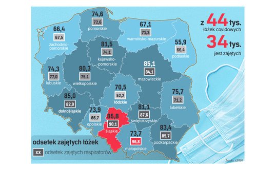 W najbliższych dniach może być też problem w Wielkopolsce i na Dolnym Śląsku, gdzie obecnie jest największa dynamika przyrostu hospitalizowanych osób.