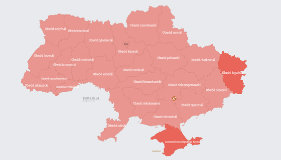 We wszystkich obwodach Ukrainy ogłoszony został alert powietrzny. Ma to związek ze startem z lotniska w pobliżu Mozdoku w Osetii Północnej na Kaukazie MiG-ów-31, które potencjalnie mogą być uzbrojone w rakiety Kindżał.