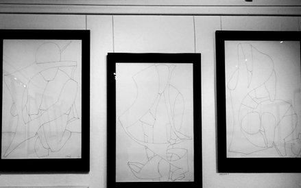 Różni je temat, ale łączy bezbłędnie poprowadzona czysta linia, kreślona czarnym tuszem na białym papierze. W pierwszym cyklu  jej lekkość i subtelność kontrastuje z egzystencjalną powagą, a zarazem współgra ze ruchliwa zmiennością sytuacji. Bohaterem tych rysunków jest człowiek, wpisany w półabstrakcyjne kompozycje, które mogą być synonimem kreacyjnego działania artysty, jak i znakiem złożonych relacji człowieka z innymi ludźmi i otaczającym światem.