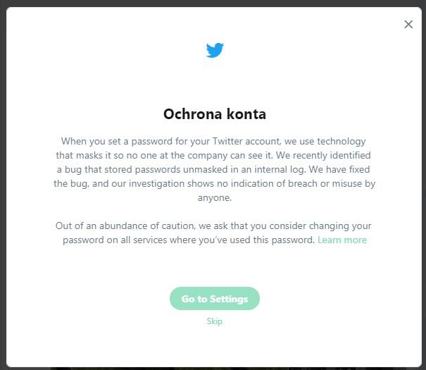 Twitter poinformował, że chroni hasła użytkowników za pomocą procesu zwanego hashing, który pokazuje losowe znaki zamiast rzeczywistych haseł. Firma nie podała informacji, kiedy wykryto błąd i jak długo hasła były narażone na przechwycenie.
