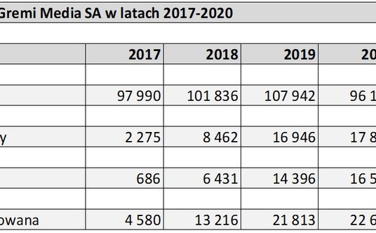 - Wyniki finansowe minionego roku uważamy za bardzo dobre. Utrata części przychodów była nieunikniona, ale szybka reakcja i przeniesienie działalności związanej z wydarzeniami biznesowymi do sfery cyfrowej pozwoliła nam obronić, a nawet poprawić zyskowność prowadzonych operacji - mówi Tomasz Jażdżyński, prezes Gremi Media. – Szczególną satysfakcję czerpiemy z tego, że te rekordowe zyski udało nam się osiągnąć bez redukcji w sferze wynagrodzeń. Zgodnie z planem przebiega również ambitny plan inwestycyjny w zakresie infrastruktury IT prowadzony przez spółki grupy - dodaje.