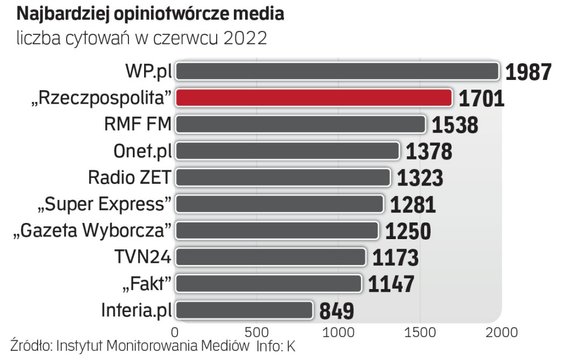 W zestawieniu wszystkich mediów „Rzeczpospolitą” wyprzedził ją portal Wirtualna Polska (1987 cytowań). Trzecia była stacja radiowa RMF FM (1538 cytowań).