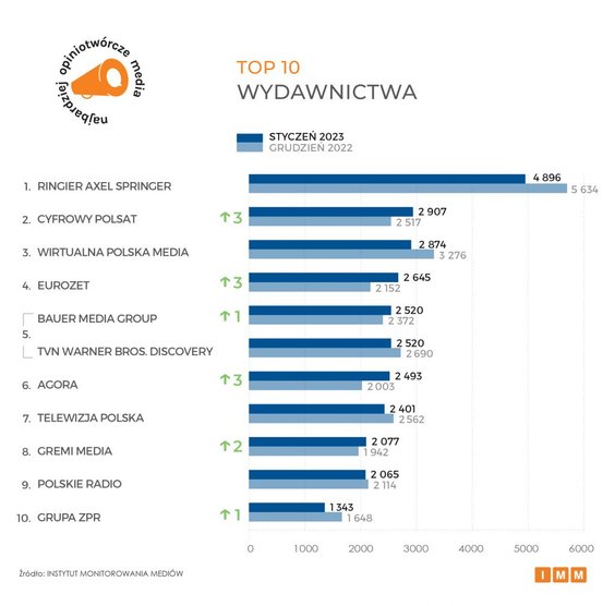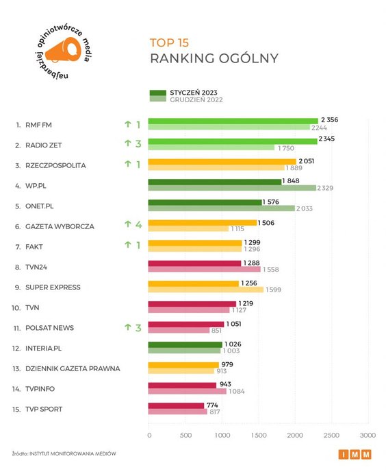 Według raportu Instytutu Monitorowania Mediów najbardziej opiniotwórczym medium w Polsce w styczniu była stacja RMF FM, na którą powoływano się 2,3 tys. razy. Na drugim miejscu, z awansem aż o trzy pozycje znalazło się z kolei Radio Zet – do informacji rozgłośni odwoływano się w styczniu zaledwie 11. razy mniej. Podium zamyka dziennik "Rzeczpospolita" z liczbą ponad 2 tys. cytowań.