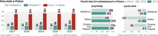 Na razie Helios zapowiada, że na początku kwietnia otworzy swoje 54. kino: w Koszalinie. Ten obiekt i dwie nowe sale w innym mieście – to ostatnie tego typu projekty przed 2–3-letnią przerwą. Ten czas sieci kin przeznaczą na odbudowę bilansu, w tym spłatę zobowiązań narosłych w pandemii.