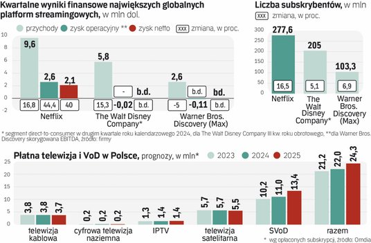 The Walt Disney Company, właściciel Disney+, również ma za sobą udany pod tym względem okres. Jego przychody ze streamingu powiększyły się o ponad 15 proc. do 5,8 mld USD i o kwartał wcześniej zaczął na tym wychodzić na plus. Strata operacyjna to już niecałe 20 mln USD. Pod względem wzrostu liczby użytkowników swoich serwisów streamingowych Disney może mówić o spowolnieniu.