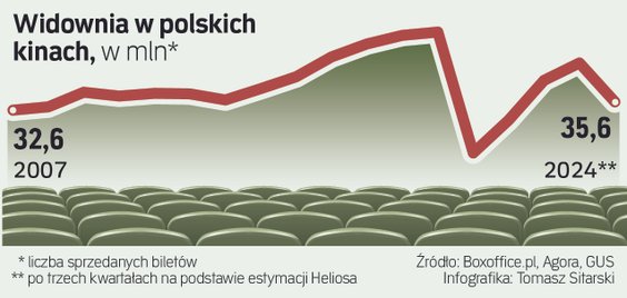 W sumie po trzech kwartałach widownia kin w Polsce wynosi więc 35,6 mln, co oznacza spadek rok do roku o około 3 proc. (z 36,8 mln).