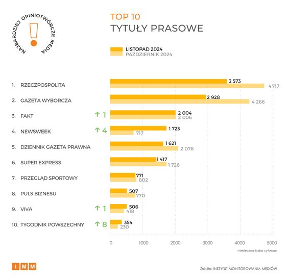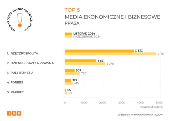 W listopadzie dziennikarze najczęściej cytowali informacje podawane przez „Rzeczpospolitą”. Za sprawą ponad 3,5 tys. wzmianek utrzymaliśmy pozycję lidera zestawienia IMM.