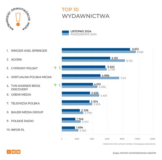 Tuż za nami plasuje się TVN24, osiągając ponad 3 tys. wzmianek w mediach. Podium zamyka „Gazeta Wyborcza”, na którą w ubiegłym miesiącu powoływano się 2,9 tys. razy.