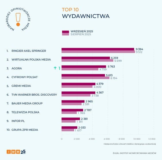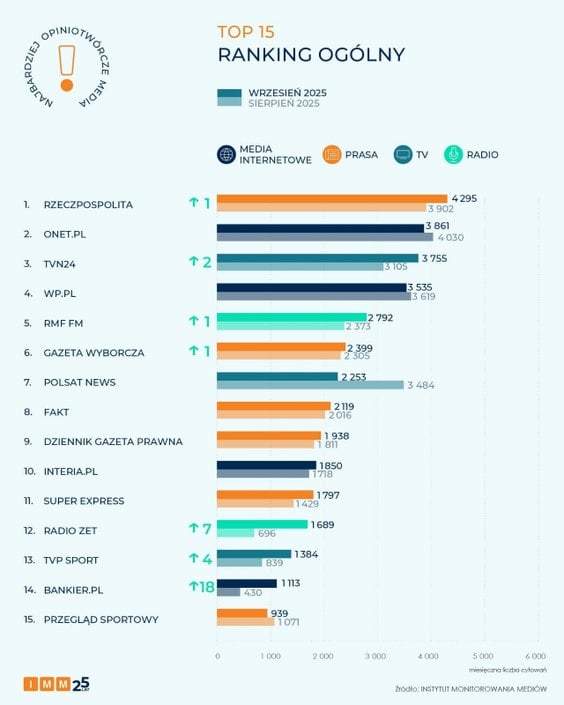 TOP 15 najbardziej opiniotwórczych mediów września