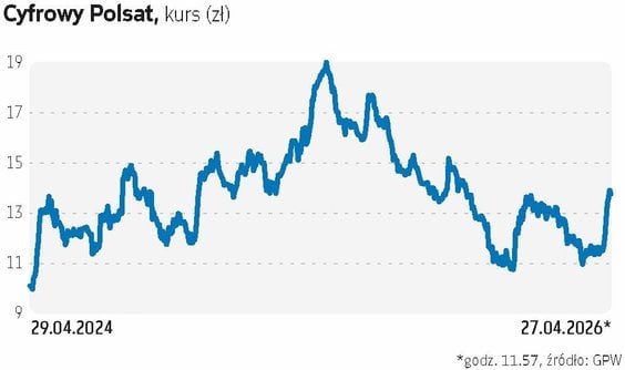 W minionym tygodniu notowaniami akcji Cyfrowego Polsatu szarpnęło. Giełdowa wartość grupy, czyli kapitalizacja, urosła w tydzień o prawie 20 proc. (kurs skoczył z 11,69 zł w piątek 17 kwietnia do 13,9 zł w ostatni piątek), ale nadal wynosi tylko 8,9 mld zł. Tylko ponieważ jest to o połowę mniej niż 5 lat temu, a kapitalizacja podobnej pod względem charakteru i skali biznesu Grupy Orange Polska po tegorocznych wzrostach kursu jest już ponad dwa razy wyższa i sięga 19 mld zł.