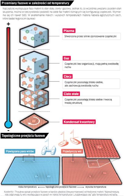 74-letni Michael Kosterlitz, syn biochemika, bratanek reżysera filmowego Henry'ego Kostera (w 1948 r. nominowanego do Oscara za reżyserię filmu „Żona biskupa"), studiował na Uniwersytecie Cambridge. Natomiast doktorat z fizyki uzyskał w 1969 r. na „konkurencyjnym" Oxfordzie. Od 1982 r. związany jest z amerykańskim Brown University. Prowadził badania w Instituto di Fisica w Turynie we Włoszech, na Cornell University, Princeton University, Bell Telephone Laboratories i Harvard University. Jego rodzice – Żydzi – przed II wojną światową emigrowali z Niemiec do Wielkiej Brytanii. Telefon z informacją o nagrodzie odebrał, idąc na lunch, na parkingu w Helsinkach, gdzie wykłada na Aalto University. Powiedział wtedy na gorąco: „Jestem nieco oszołomiony. Wciąż trudno mi przejść nad tym do porządku dziennego". Przed Noblem został odznaczony przez British Institute of Physics nagrodą Maxwell Medal and Prize (1981 r.) i Lars Onsager Prize. Komentujaąc otrzymane wyróżnienie, powiedział: „To był kawał roboty, którą wykonałem jako naprawdę głupi post-doc (doktor odbywający staż podoktorski). Tak naprawdę kompletna ignorancja dawała mi przewagę, gdyż dzięki niej nie miałem z góry przyjętych założeń. Byłem dostatecznie młody i głupi, żeby się do tego zabrać". —k.k.