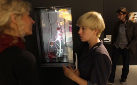 "Od najdawniejszych czasów szukaliśmy kontaktu z innymi ludźmi. Krocząc tą drogą odkryliśmy pismo, radio, telefon, telegraf, a w końcu internet. Pokonywaliśmy bariery językowe, problemy związane z odległością i czasem przepływu informacji. Dzięki nowoczesnym technologiom i urządzeniom ułatwiających komunikowanie się zmieniamy świat oraz siebie samych. Połączeni niewidzialną siecią, pozostajemy ze sobą w nieustającym kontakcie" - wyjaśniają twórcy tego obrazu.