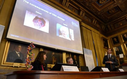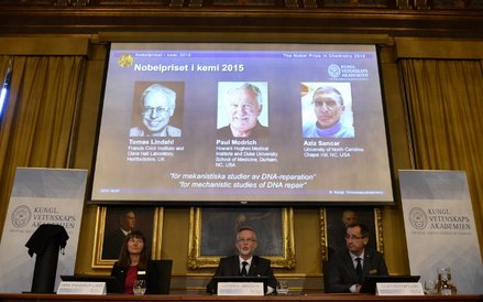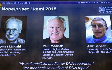 2015 - Tomas Lindahl, Paul Modrich i Aziz Sancar za "mechanistyczne badania naprawy DNA".